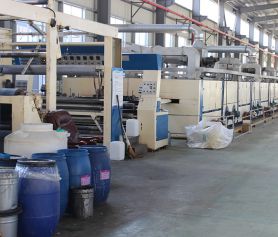 引進國外水刺法生產(chǎn)流水線,重型劍桿織布機臺,整形、熱熔、縫制、設(shè)備配套齊全。
